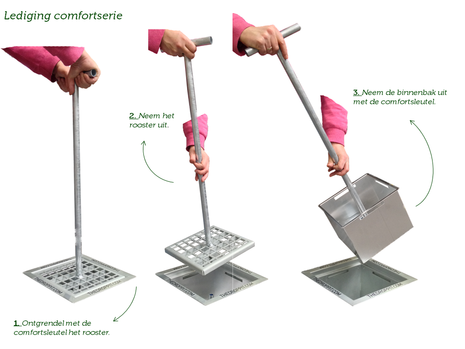 Avec la clé de confort, vous pouvez facilement, rapidement, hygiéniquement et respecter les règles de santé et de sécurité au travail pour retirer la grille et la boîte intérieure. Pas besoin de se pencher!