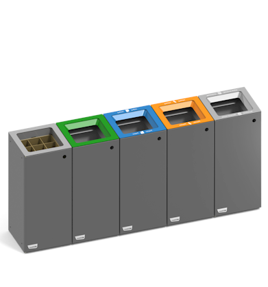 Poubelle : / RAL 7016 (gris anthracite) / RAL 9010 (blanc pur) / / Encastrement : / RAL 2004 (orange) / RAL 5017 (bleu) / RAL 6018 (vert) / RAL7035 (gris clair) |