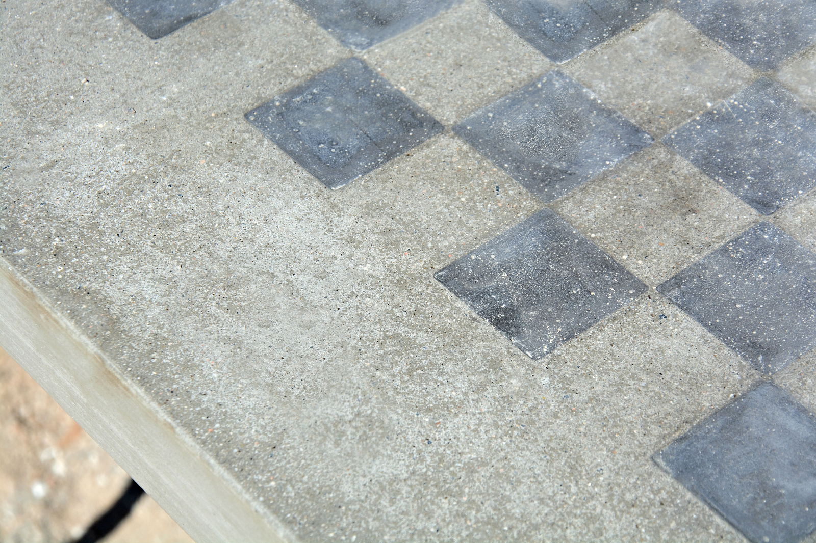 La table d'échecs MAT est un ajout pratique aux parcs et autres espaces de détente. Une planche de béton unique repose sur un pied en métal central.