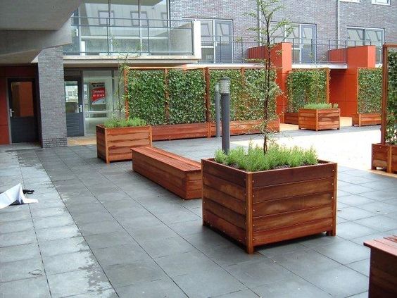 Nous utilisons uniquement du bois dur tropical certifié qui est récolté légalement et qui a une classe de durabilité 2 pour la fabrication de nos jardinières. Cela donne aux bacs un aspect chaleureux et accueillant. Parce que le bois dur est très durable, il ne nécessite aucun traitement supplémentaire. Ces jardinières sont construites avec des attaches en acier inoxydable et l'intérieur est équipé d'un tissu anti-racine.