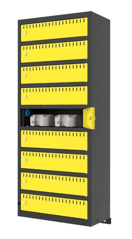 CASIER AVEC CHARGE DE BATTERIE INTÉRIEURDe plus en plus de personnes optent pour des moyens de transport écologiques, comme un vélo électrique, dont la batterie peut être chargée de manière simple et pratique dans nos casiers de chargement pour batteries de vélo. Il est également possible d'y ranger d'autres accessoires de vélo.