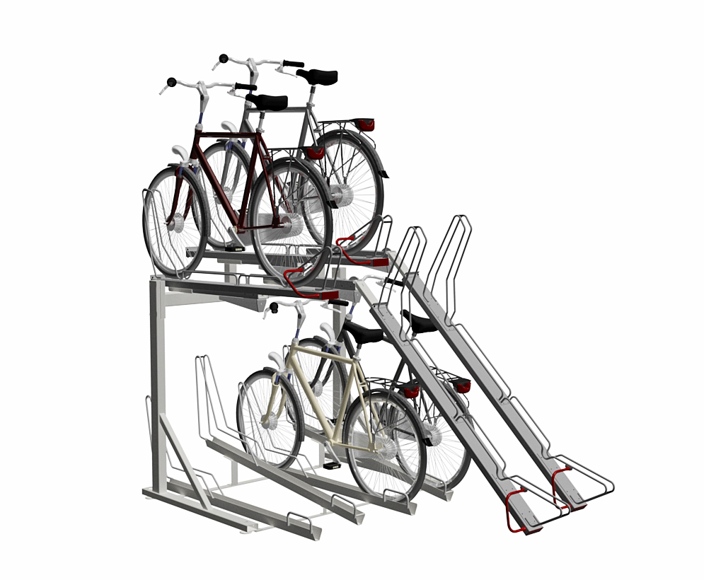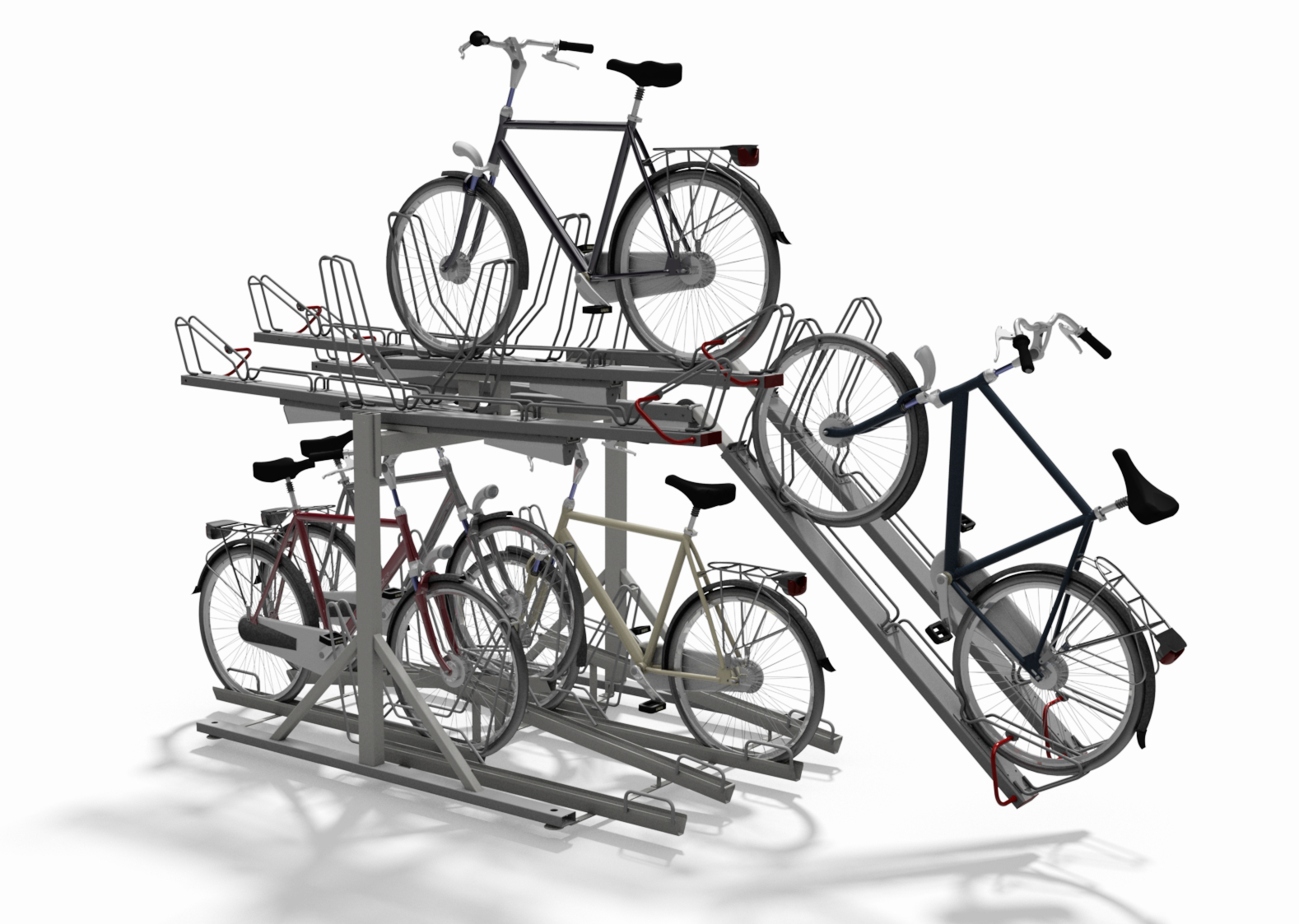 Un parking à vélos à double couche peut économiser beaucoup d'espace et fournir encore plus d'espace de stockage pour les vélos.