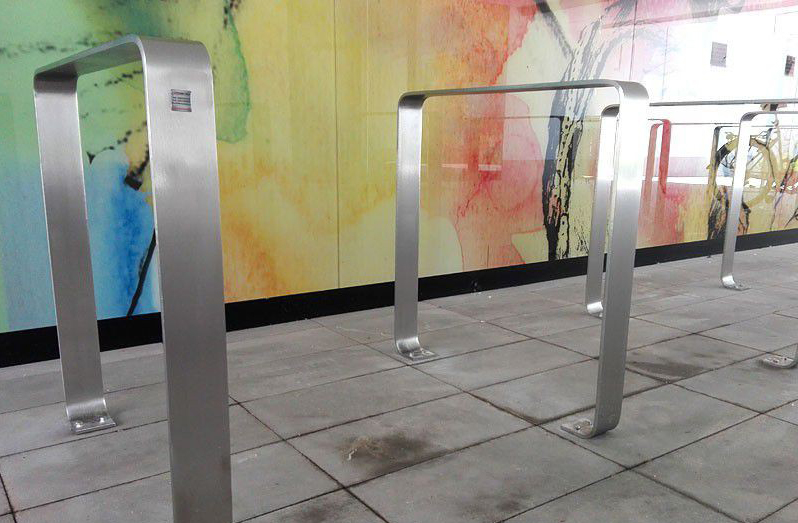 Support de vélo U-22 fait d'une tige plate 80x8mm. Disponible en 3 variantes différentes - acier galvanisé, acier galvanisé et laqué et acier inoxydable.