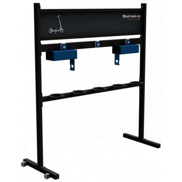 - avec supports pivotants pour une fixation stable des vélos - avec roues de transport - largeur de pneu 6x à 55 mm / 3x à 45 mm - finition : galvanisée, laquée en RAL 9005