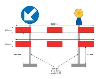 Convient à diverses configurations. Fermeture des chantiers et des routes. La barrière se compose de 2 supports de 40x40x1200mm, de 2 profils de planches horizontales de 2m / 2,5m / 3m en aluminium avec un film réfléchissant HI classe 2. La barrière peut être montée sur des pieds en plastique de 15 ou 25 Kg.