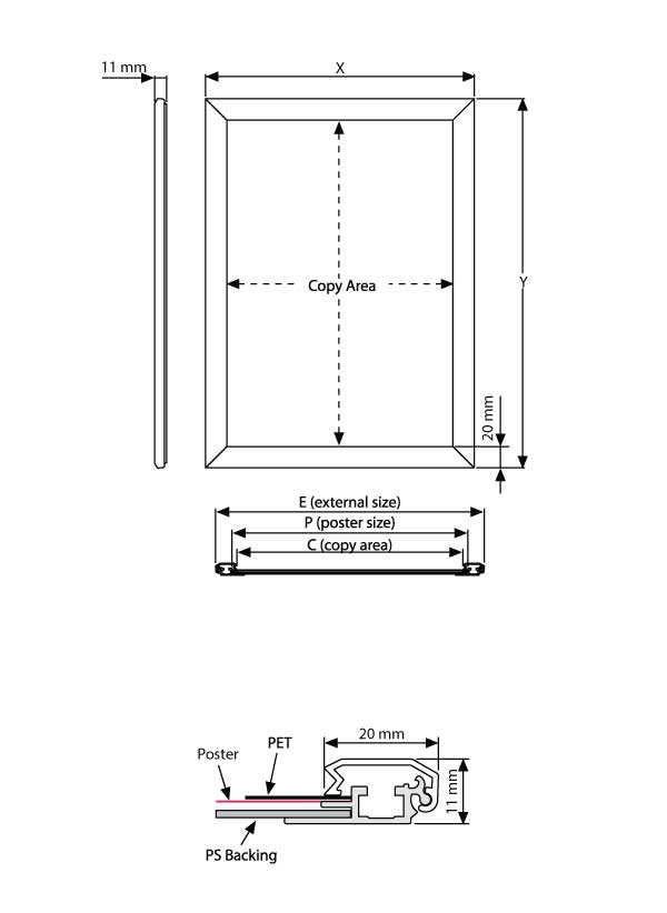 - Les 4 côtés en aluminium du cadre sont faciles à ouvrir et à fixer. Les tailles des listes de clics que nous proposons varient du format A5 au format A0. Un cadre clic peut facilement être accroché au mur en utilisant un système de suspension flexible. À l'aide d'un fil suspendu et d'un crochet, vous pouvez fixer le cadre clic dans un rail suspendu. Vous pouvez ensuite facilement déplacer ou ajuster la hauteur du cadre.