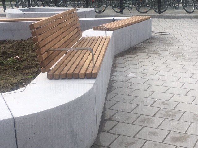 Les bancs ont été placés sur des bancs en béton existants.
