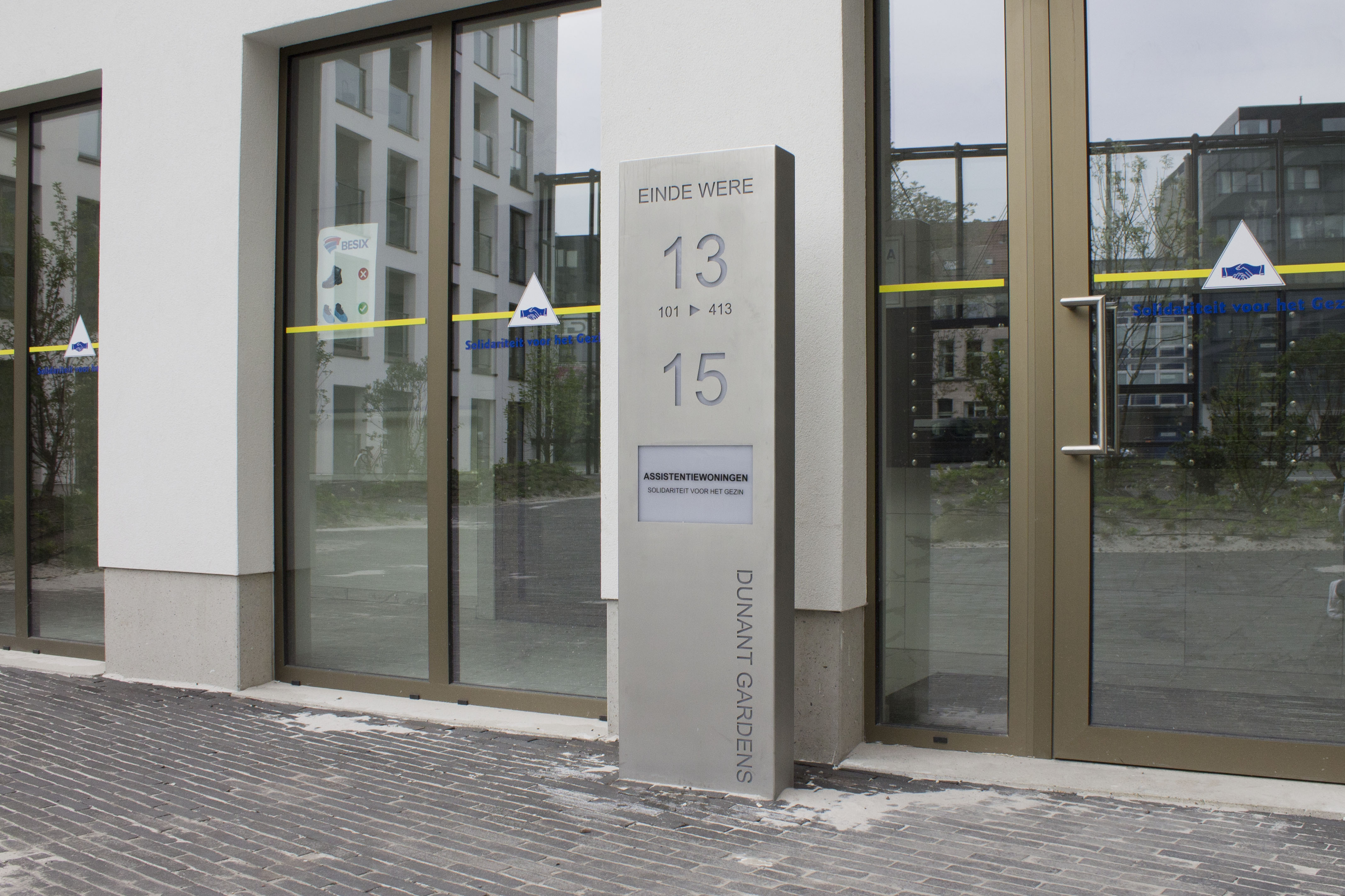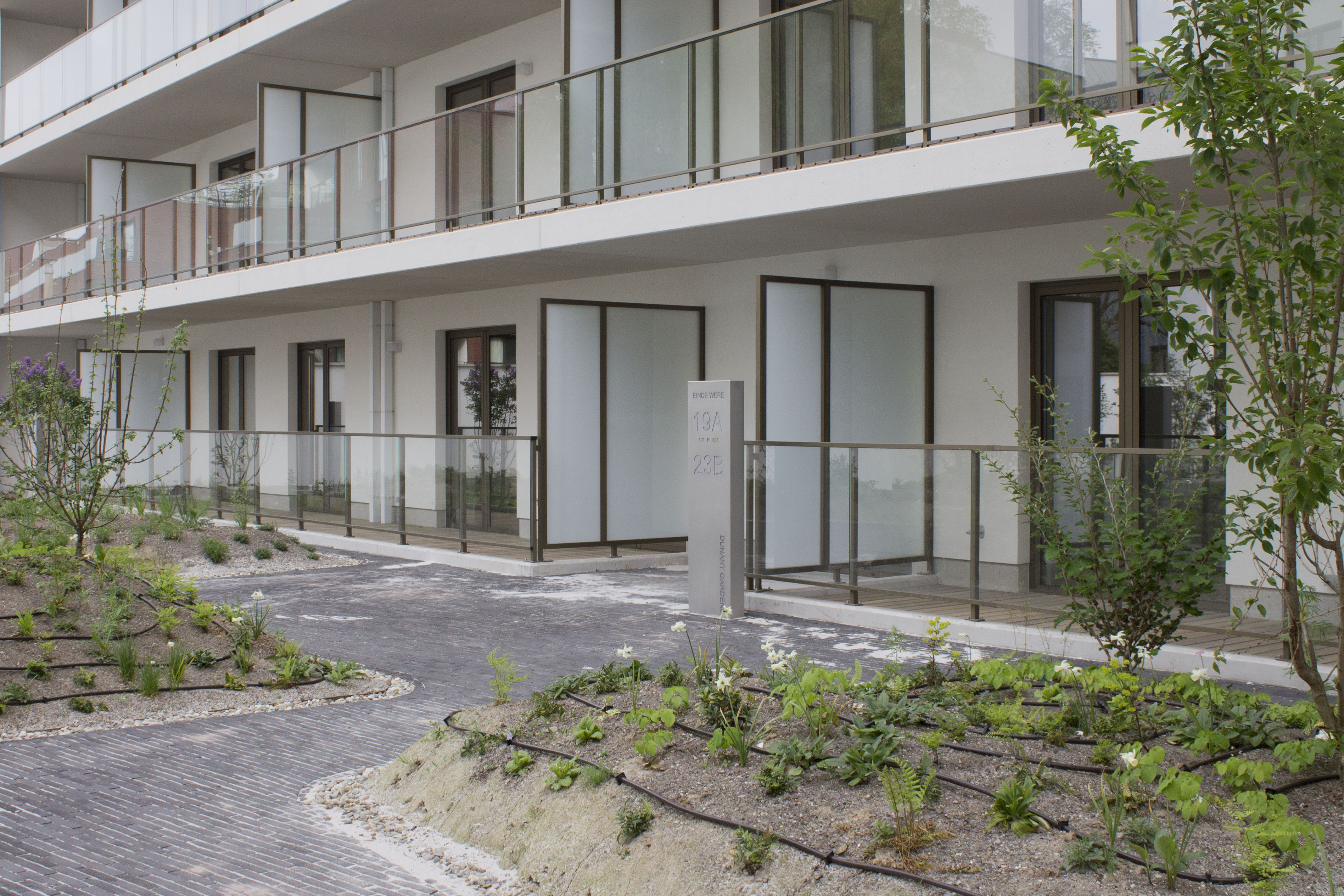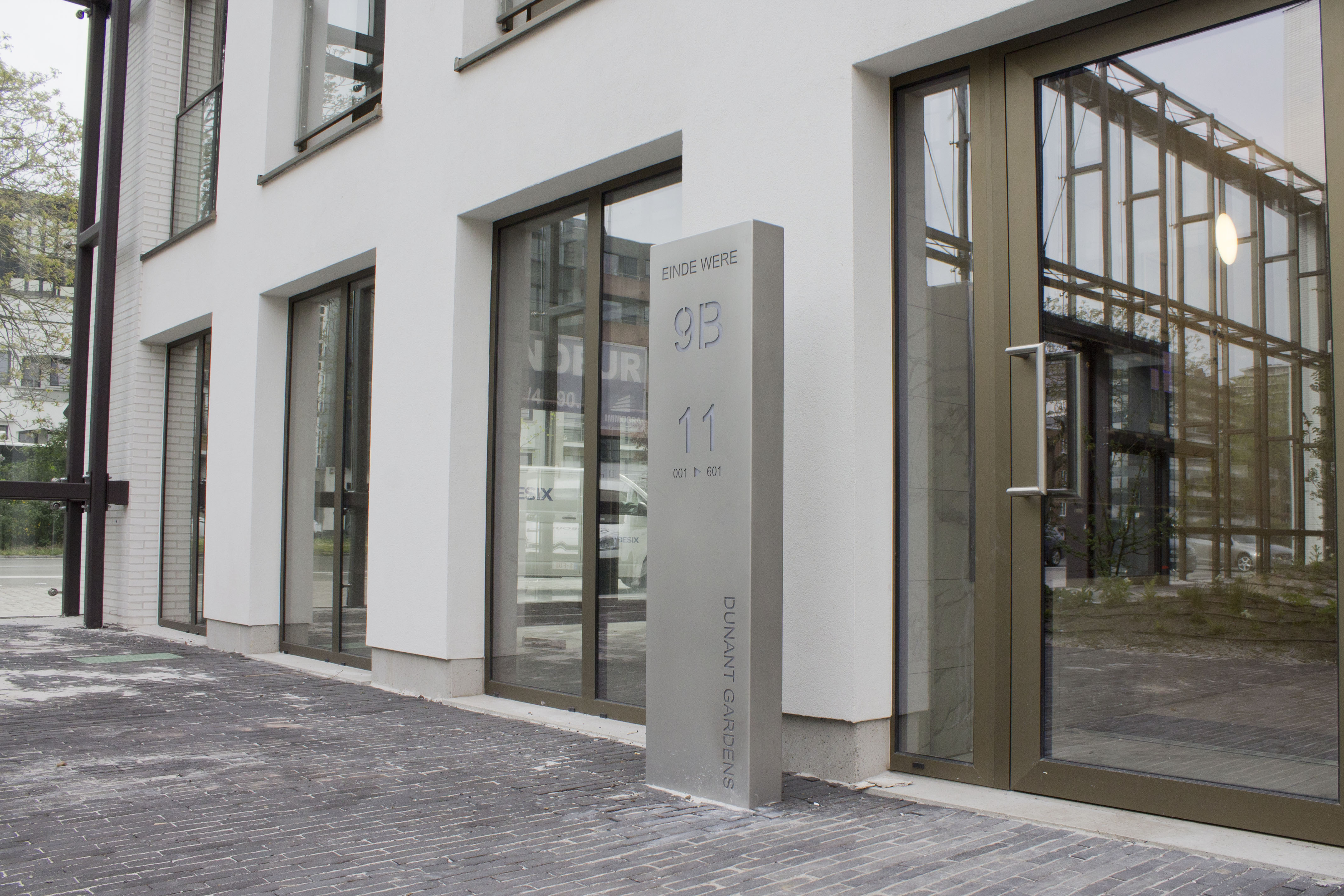 Consoles sur mesure basées sur notre boîte aux lettres Monolith.Ces 16 consoles font partie du projet "Dunant Gardens" à Gand.Des boîtes aux lettres de groupe ont également été placées ici à chaque entrée des bâtiments.