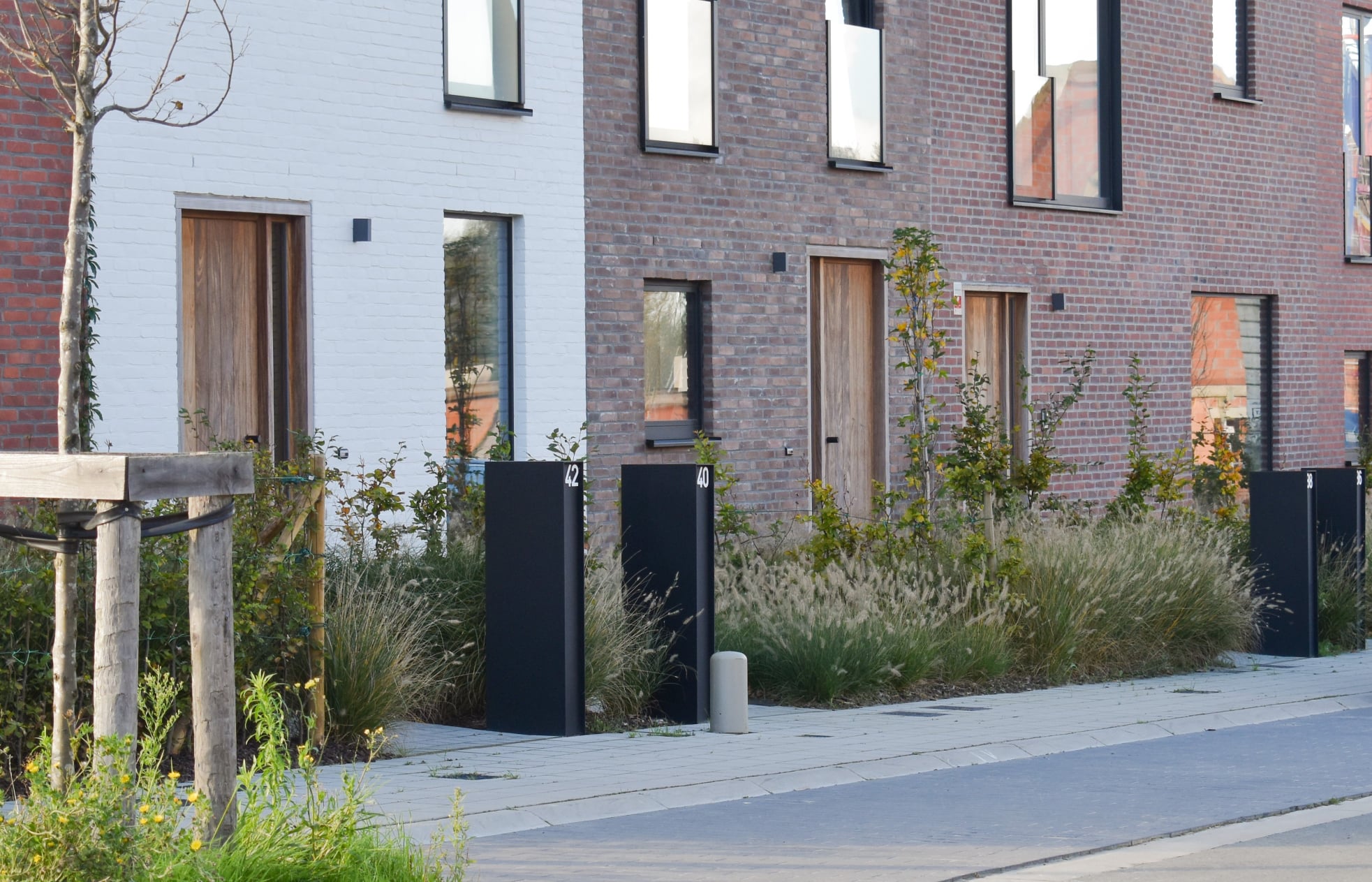 Voor fase 1 van het project Langwater in Kortrijk werden er 100 Fenix Top M brievenbussen aangekocht. Deze zijn voorzien van een huisnummer in aluminium (wit gelakt) om zo één uniform geheel te bekomen.