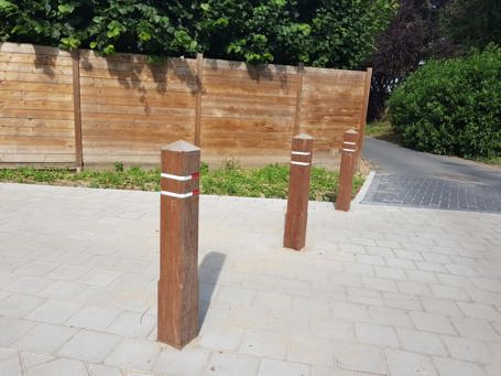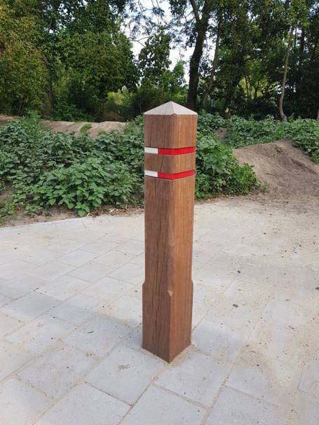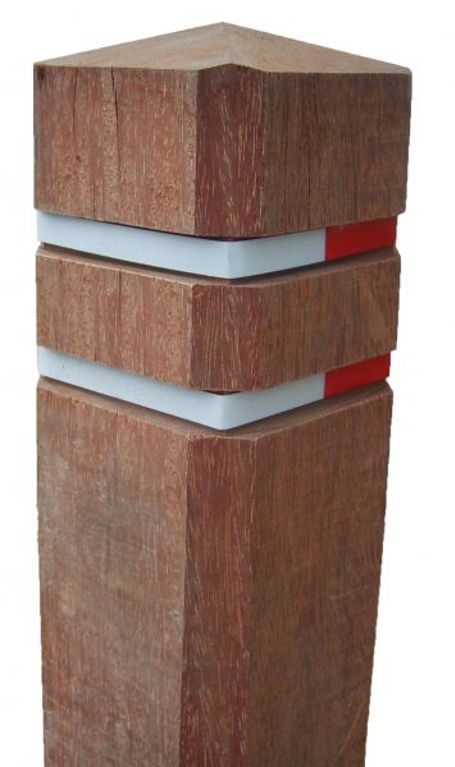 De palen worden vierkant geschaafd en voorzien van een diamantkop waarin 2 reflectors zijn verwerkt.