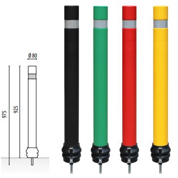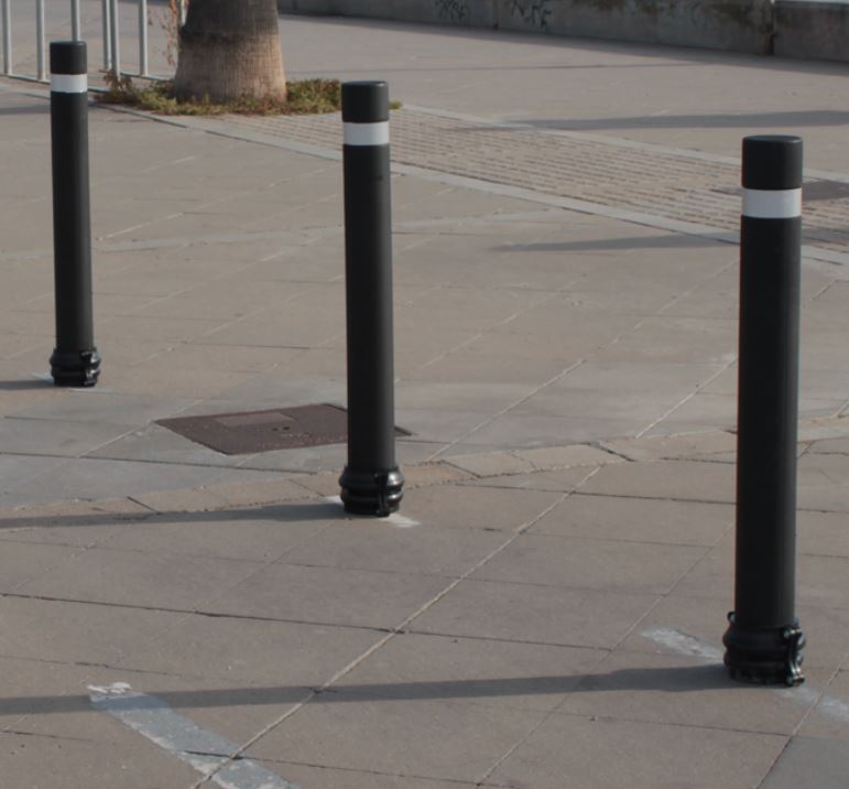 - Bollards met geheugen, in geval van inslag keren ze terug naar hun oorspronkelijke vorm en positie.
