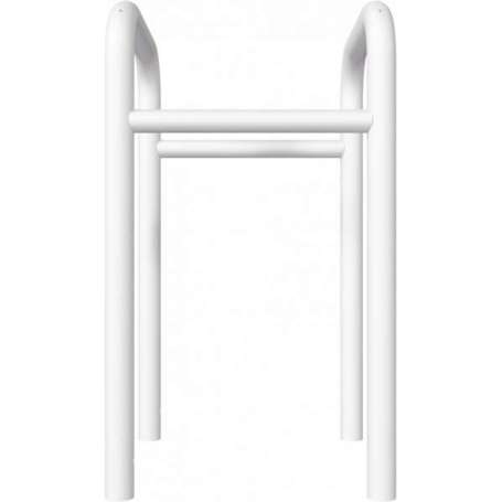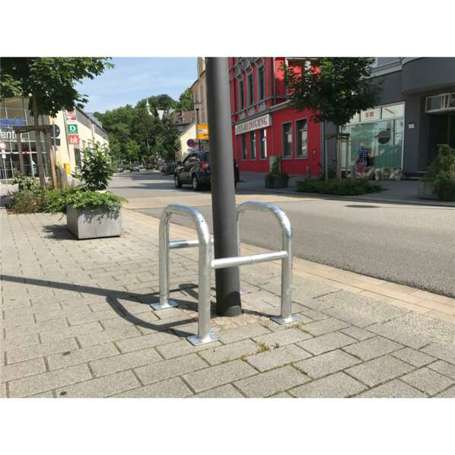 Uitvoering om in te betonneren of om vast te bouten met voetplaat op de harde ondergrond. Thermisch verzinkt staal of poederlak RAL kleur (B) Stalen buis van Ø60mm en Ø48mm B x D x H