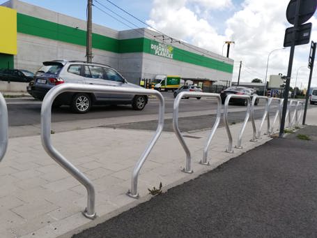 Aanleunbeugels gemaakt uit een ronde stalen buis met diameter 48mm en gebogen in één stuk in de vorm van een omega.