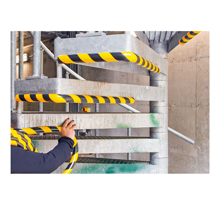 Met de opvallende kleuren zorgen de stootranden er ook voor dat gevaarlijke plaatsen, zoals risicovolle hoeken en randen, meer in het oog springen. Hierdoor wordt de kans op ongevallen verkleind.