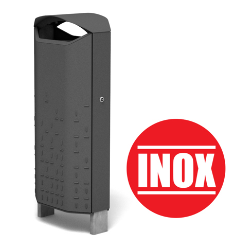 - Een optionele verwijderbare asbak geïntegreerd in de werpopening kan voorzien worden op vraag van de klant. Deze is ook vervaardigd uit RVS en vangt de sigaret op die eventueel nog niet gedoofd is maar kan dan op zijn eigen uitdoven in dit apart compartiment. Daarna kan de asbak eenvoudig leeggemaakt worden in de grote bin vanvoorzien worden door opdruk of de afvalbak. Er is ook een asbak beschikbaar aan de buitenkant voor de grotere opvang aan sigaretten peuken.