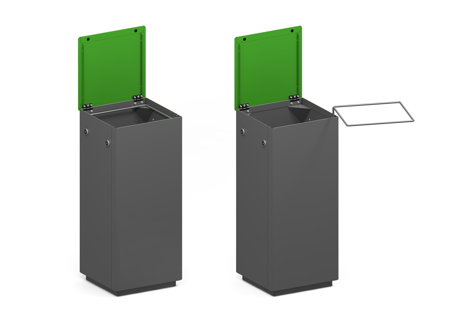 | Kleur | Afvalbak: / RAL 7016 (Antracietgrijs) / RAL 9010 ( zuiver wit) / / Inwerp: / RAL 2004 (Oranje) / RAL 5017 (Blauw) / RAL 6018 (Groen) / RAL7035 (Lichtgrijs) |