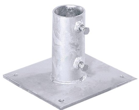 Voetplaat in warm verzinkt staal met 4 gaten in de voetplaat om te bevestigen op de ondergrond.