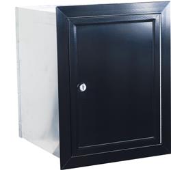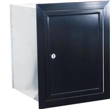 Inbouwcassette voorzien van een opendraaiende deur met inox pianoscharnier, slot met 2 sleutels en overlappignsprofiel van 18mm rondom.