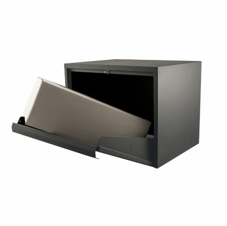 Geleverd als een verzinkt stalen kast en voorzien van een sterke RAL 7024 (antraciet) of RAL 9011 (zwart) structuur poedercoating.
