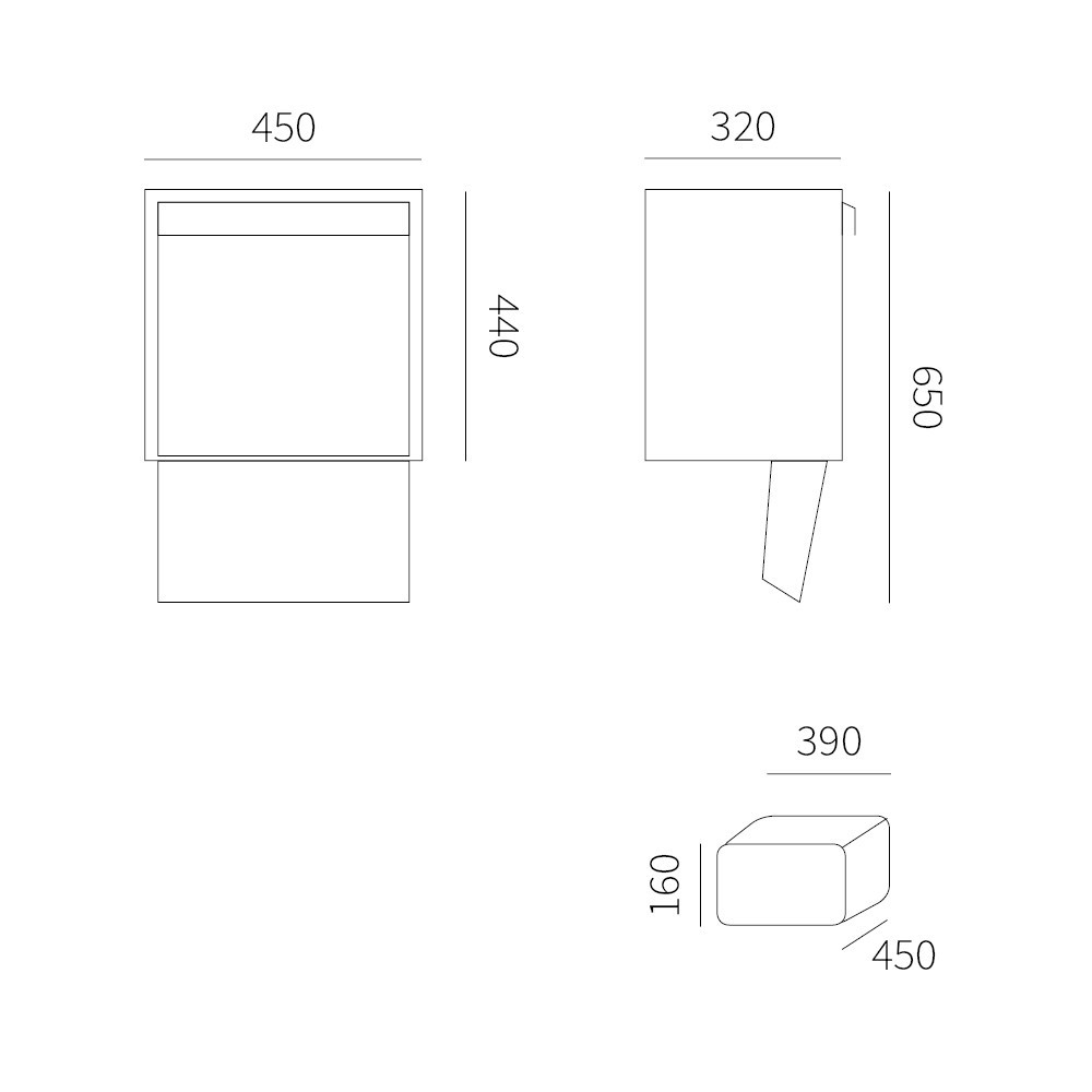 De maximale pakketmaat voor de doorvoerbox is 450x320x160mm.