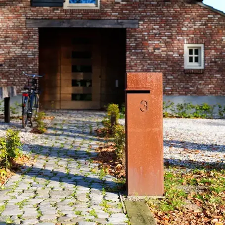 De IVAR cortenstaal brievenbus heeft een warme en krachtige uitstraling. Dit komt door de oranjebruine kleur van het cortenstaal, die zich vormt door een natuurlijke roestlaag.