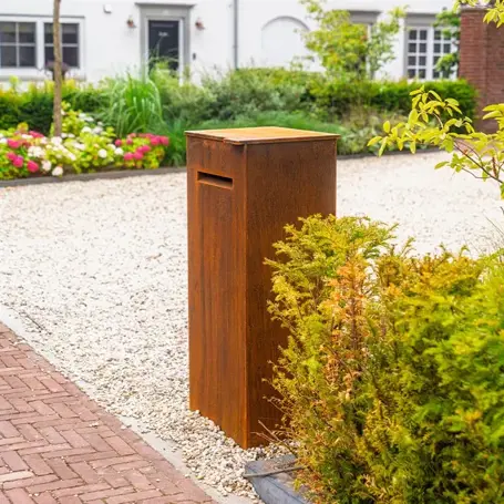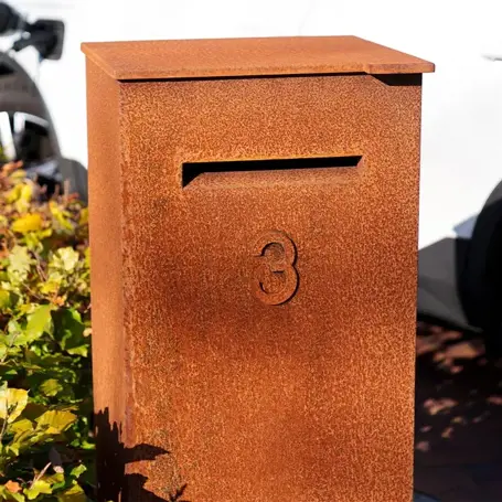 De cortenstaal brievenbus heeft een warme uitstraling. Dit komt door de oranjebruine kleur van het cortenstaal, die zich vormt door een natuurlijke roestlaag. Een andere naam voor cortenstaal is weervast staal: weersomstandigheden hebben namelijk een positieve invloed op dit materiaal.