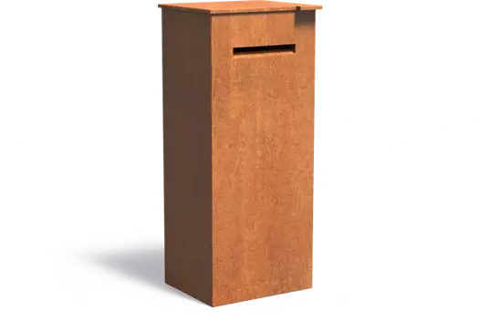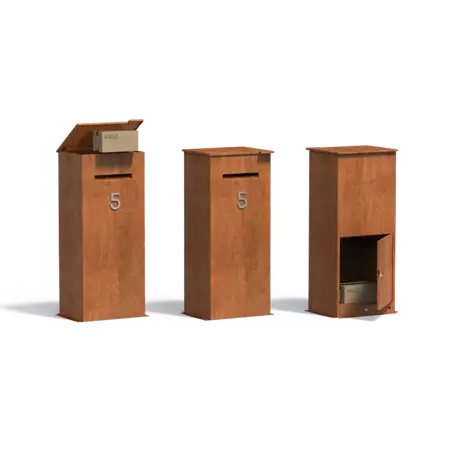 Ontvang altijd op een veilige manier jouw post en pakketjes met de CASE cortenstaal brievenbus. Ook als je niet thuis bent! Onze brievenbus is voorzien van een pakketbox waar jouw pakketje makkelijk inpast. De bezorger opent de deksel van de brievenbus en legt het pakketje in de box. Wanneer de bezorger de deksel sluit, valt automatisch het pakket naar beneden. Door een deur met slot kan je de brievenbus legen.