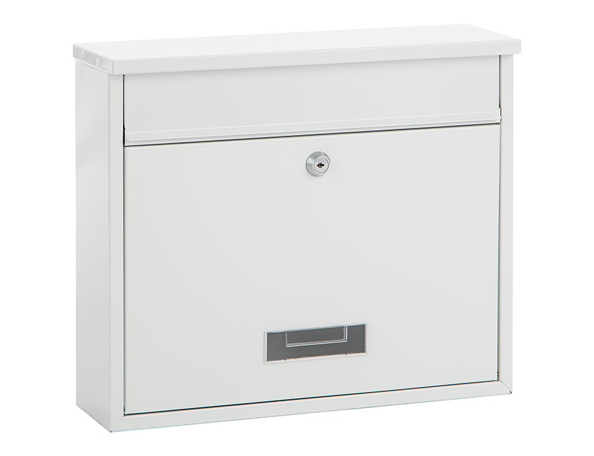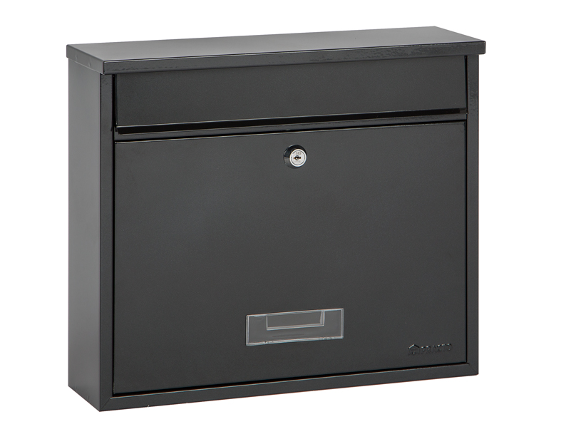 De brievenbus met inwerp bovenaan is vervaardigd uit duurzaam gelakt staal.
