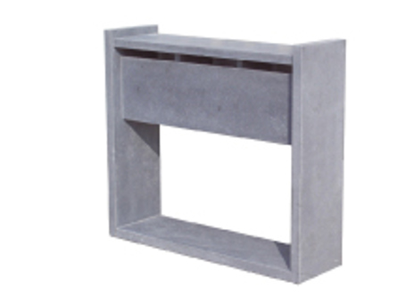 Vooraan een open inwerpgleuf, achteraan een aluminium geanodiseerd deurtje.