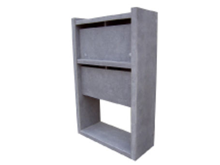 Vooraan een open inwerpgleuf, achteraan een aluminium geanodiseerd deurtje.