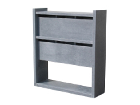 Vooraan een open inwerpgleuf, achteraan een aluminium geanodiseerd deurtje.