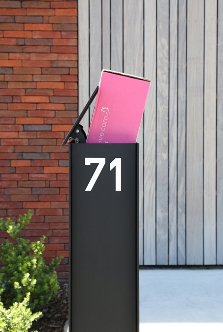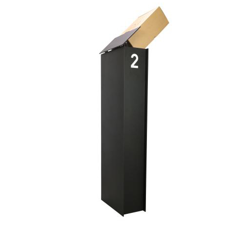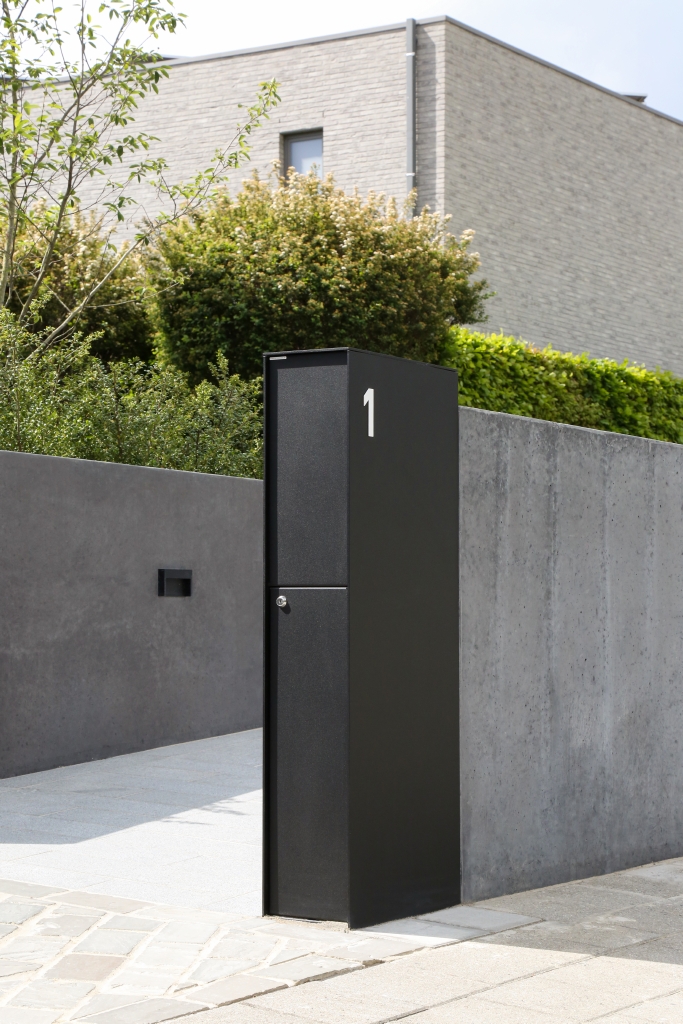 Pakjes en brieven worden langs boven in de pakketbrievenbus gedropt wat resulteert in een strak design zonder brievenbusklep en zichtbare sloten.