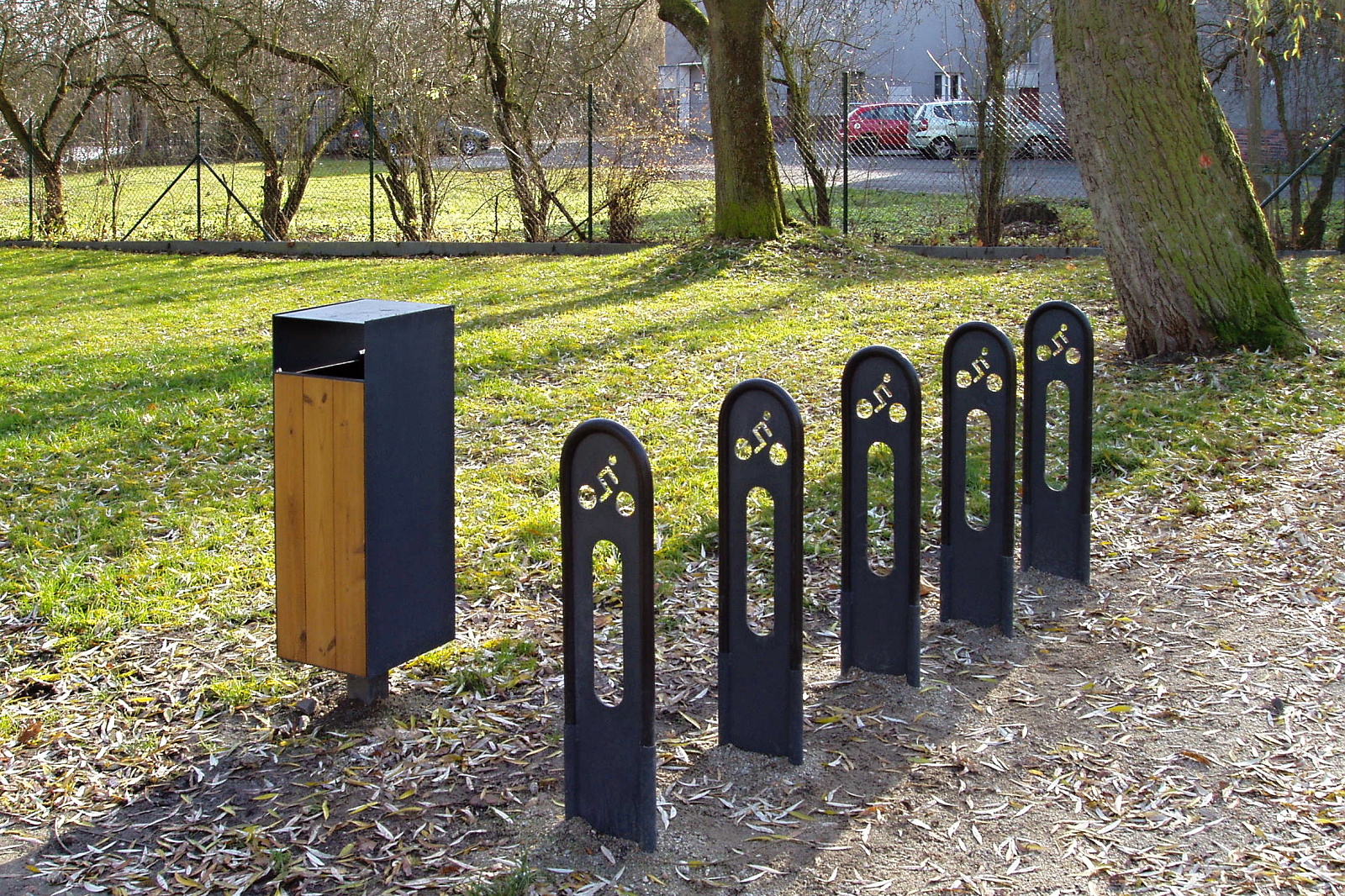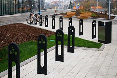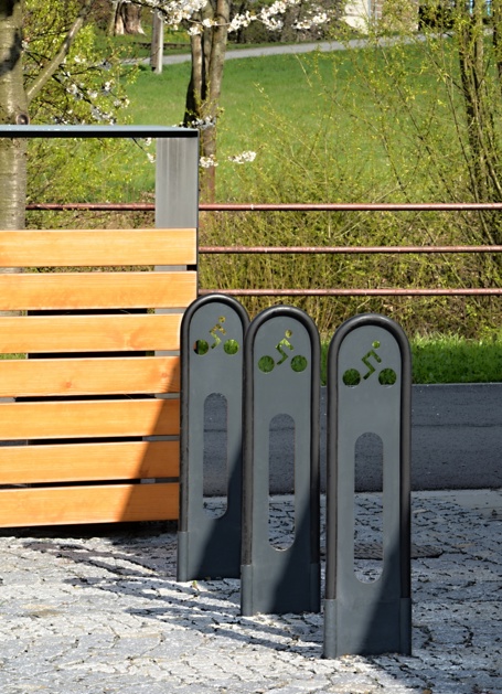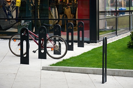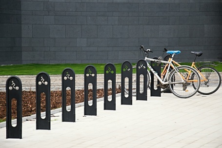 Een flexibel ondersteunend parkeersysteem voor fietsen. Het basiselement van deze fietsstandaard is een stalen las met een speciaal rubberen profiel aan de buitenkant. Dit rubberen profiel beschermt de constructie tegen mogelijke schade. De gaten in het precieze metalen deel worden gebruikt voor het doorlaten van een fietsslot. Het is mogelijk om een tekst of logo op te nemen in het uitgesneden deel.