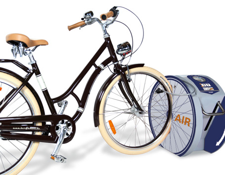 FIETSPOMP AIR DRUMSpeels vormgegeven fietspomp, ideaal voor plaatsing bij fietsparkeervoorzieningen.