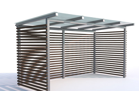 | Wanden | Gehard glas, stalen profielen of houten latten |