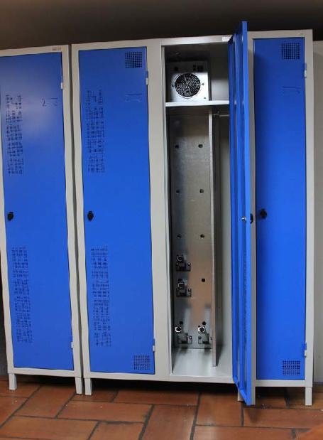 Droging met warme lucht in 45 minuten (zweten) tot 2,5 uur (vochtig) dankzij een ventilatiesysteem gekoppeld aan een verwarmingselement