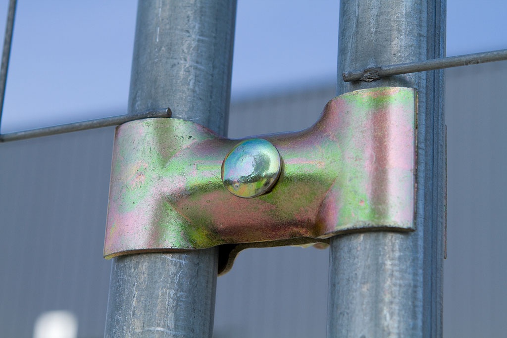 Werfhekklem voor koppeling van de bouwhekken.