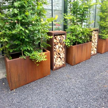 • Zorg voor een goede afwatering (gaten in bodem standaard af-productie), er mag geen overtollig water in de plantenbak blijven staan, omdat het materiaal dan op den duur kan gaan doorroesten door combinatie zuurstof en aarde.