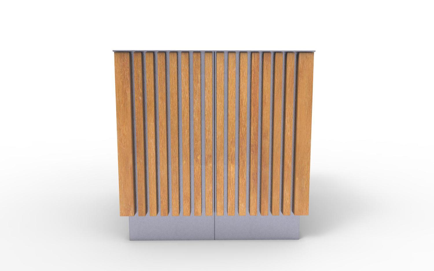 | Houtsoort | Exotisch IROKO hardhout afgewerkt met olie / Gevernist hardhout (enkel binnengebruik) |
