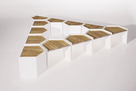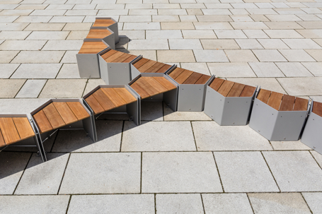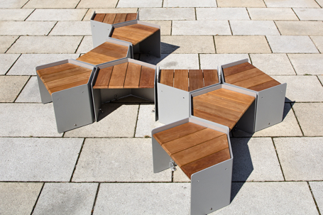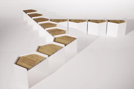 De ondersteunende structuur is gemaakt van gegalvaniseerd staal behandeld met poedercoating. Een stoel is gemaakt van massief houten planken bevestigd aan de ondersteunende structuur met roestvrij schroeven. Individuele stoelen zijn aan elkaar bevestigd door roestvrijstalen connectoren. Er zijn poten met verstelbare gaten voor verankering aan de basis.