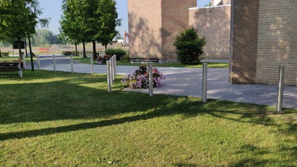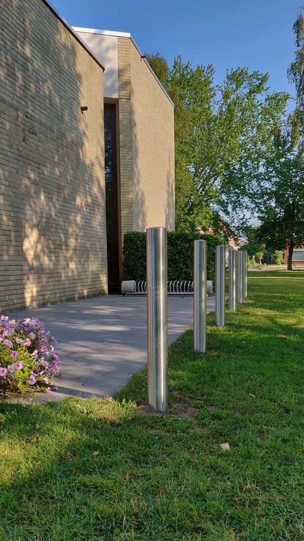Om toch nog toegankelijkheid te hebben tot het gebouw door nooddiensten en leveranciers zijn er vooraan 2 telescopische anti-rampalen geplaatst.