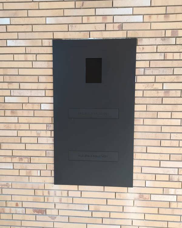 Binnenkort verhuist de bibliotheek van Kortemark naar hun nieuwe vestiging binnenin de brouwerijsite te Kortemark. Voor de eerdere fases van dit project werden ook de ensembles bij ons aangekocht. Voor dit onderdeel werd de vraag naar een op maat gemaakt geheel gesteld vanuit het Gemeentebestuur. Het werd een ontwerp van Arduo Design waarbij er twee Safe Slowmotion inwerpkleppen werden voorzien alsook een gat voor de parlofonie. Het geheel is aan de binnenzijde van het gebouw voorzien van een schuin gemaakte bodemplaat zodat ook de boeken kunnen ingeleverd worden buiten de openingsuren.