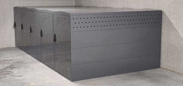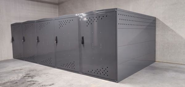 Leveren en plaatsen van 35 stuks Bikebox fietskluizen voor het Nieuw Zuid te Antwerpen.