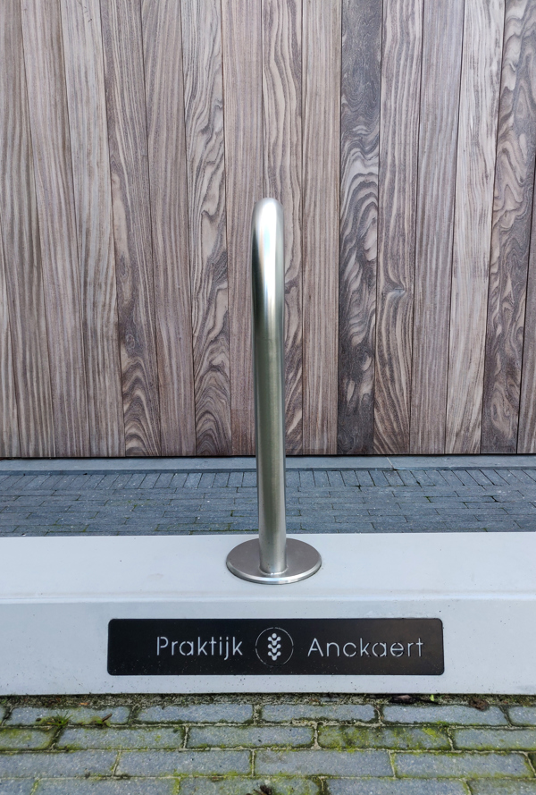 met voet uit beton en gepersonaliseerd logo voor Praktijk Anckaert te Gits.