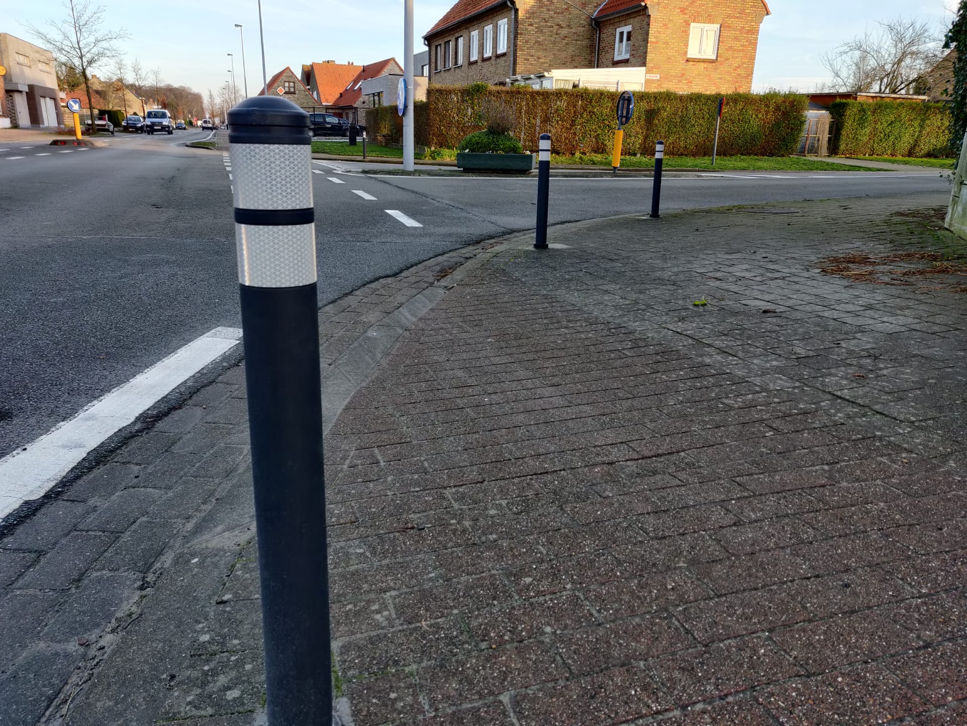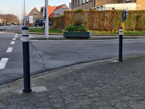 De paal is tegelijk stevig maar bij aanrijding toch flexibel genoeg om geen schade of verwondingen bij de aanrijder te veroorzaken.