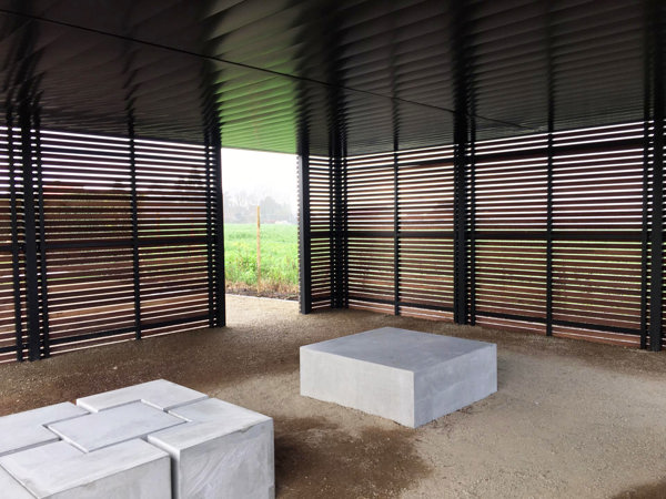 Levering van overkappingen op maat geplaatst aan de twee begraafplaatsen in Deerlijk.Het frame is gemaakt uit verzinkt staal, gepoederlakt in RAL 9005 (zwart).Er werd gekozen voor padouk FSC hardhout.
